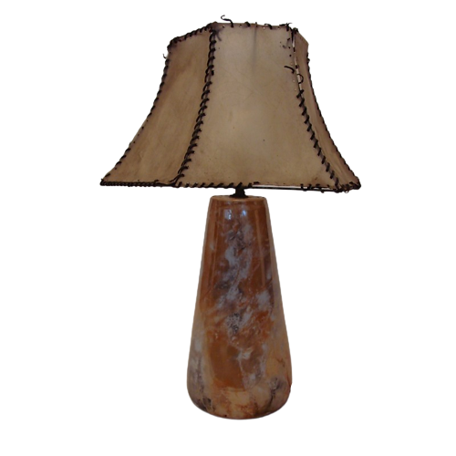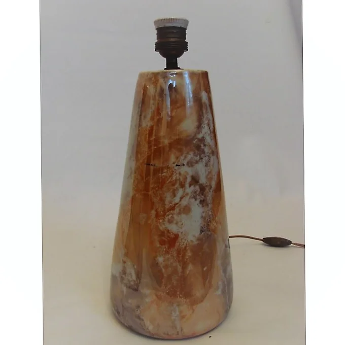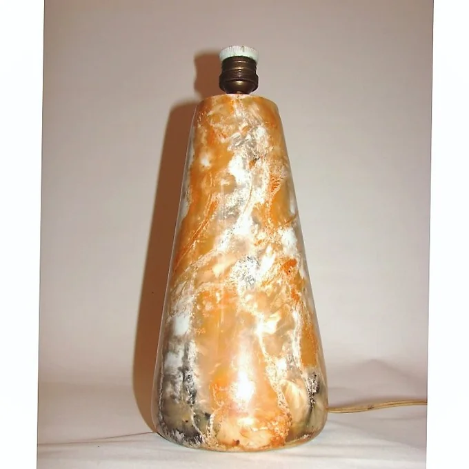 Podstawa lampy została wykonana z wysokiej jakości ceramiki o charakterystycznej, ręcznie modelowanej formie. Lampka zachowała się w oryginalnym stanie, co podkreśla jej autentyczność i kolekcjonerską wartość.