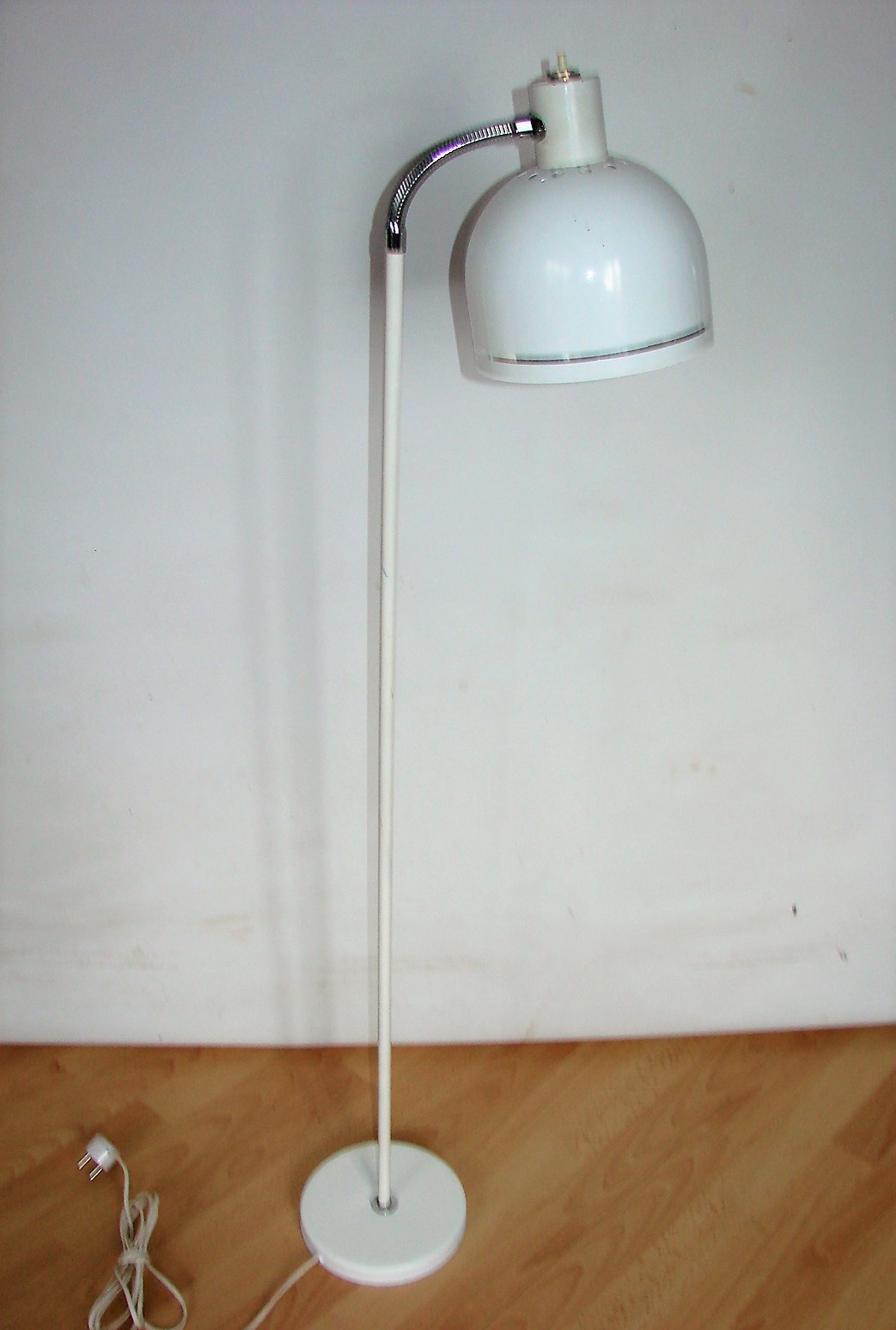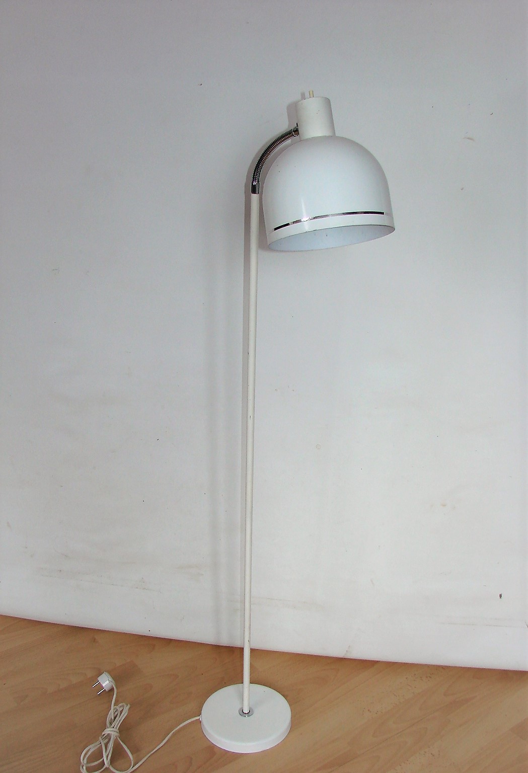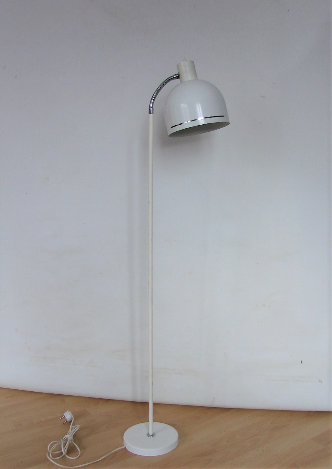 Duńska lampa podłogowa z lat 70., utrzymana w charakterystycznym dla epoki stylu skandynawskiego modernizmu. Minimalistyczna forma oraz funkcjonalna konstrukcja sprawiają, że doskonale odnajdzie się zarówno w nowoczesnych, jak i vintage’owych wnętrzach.