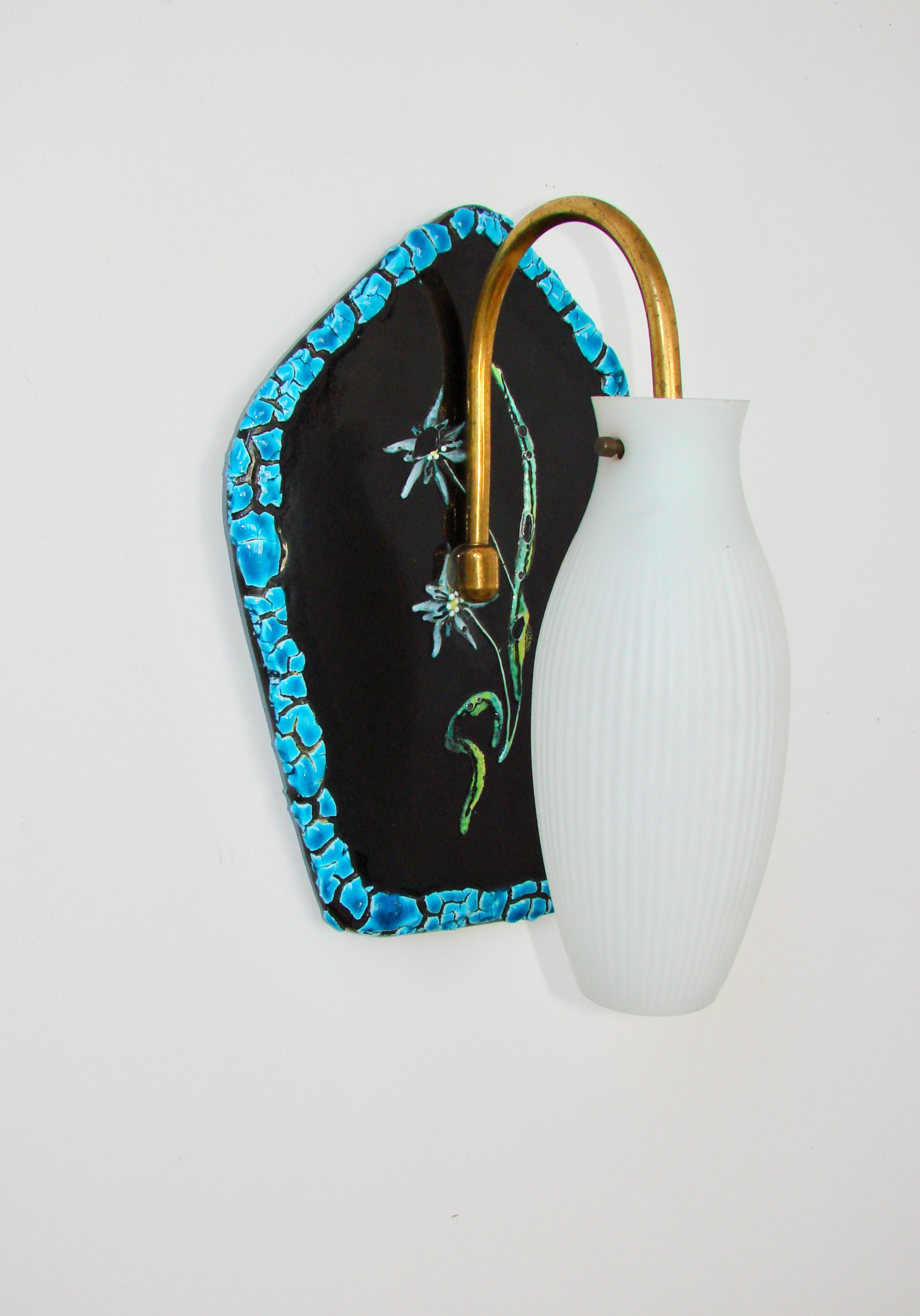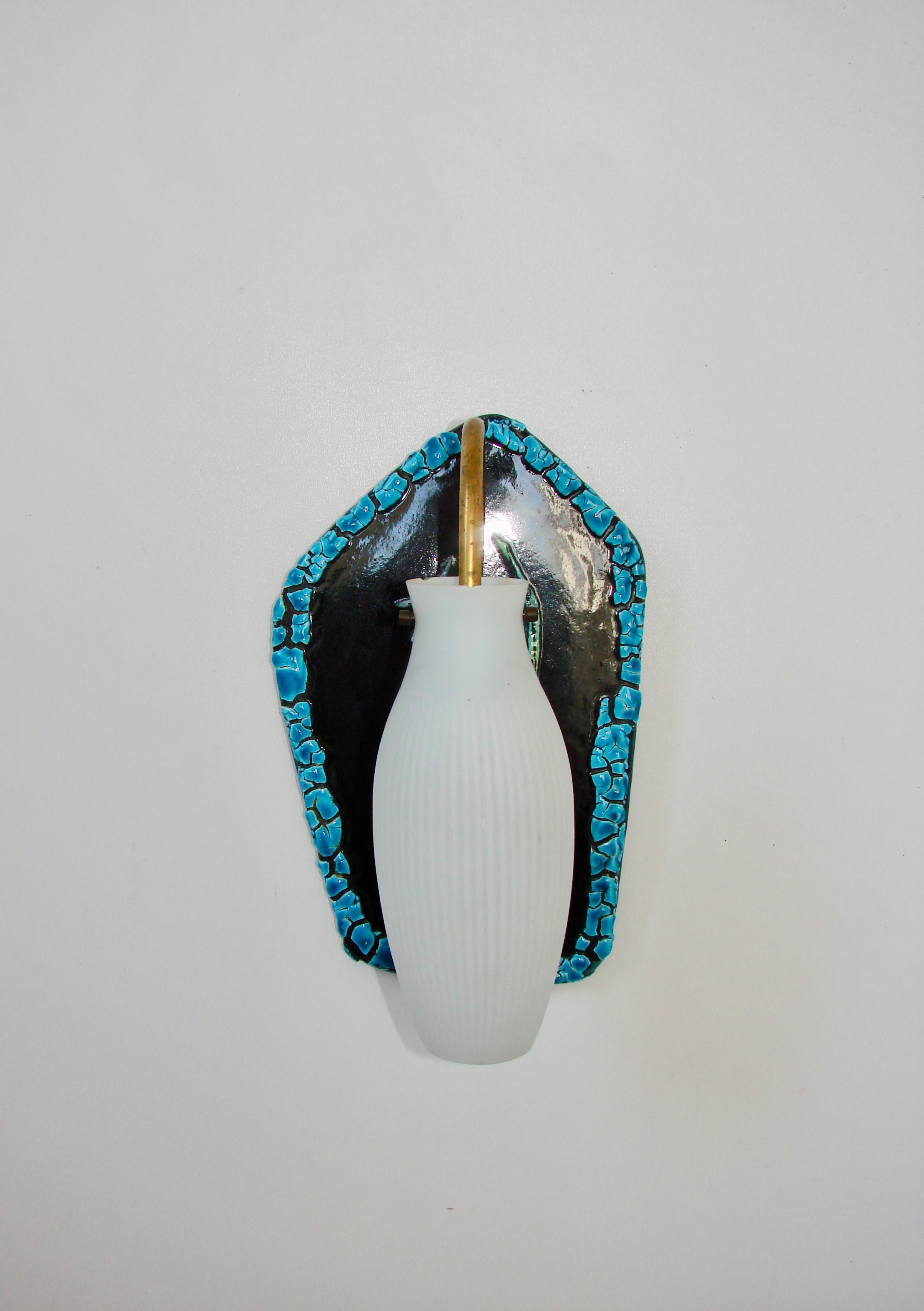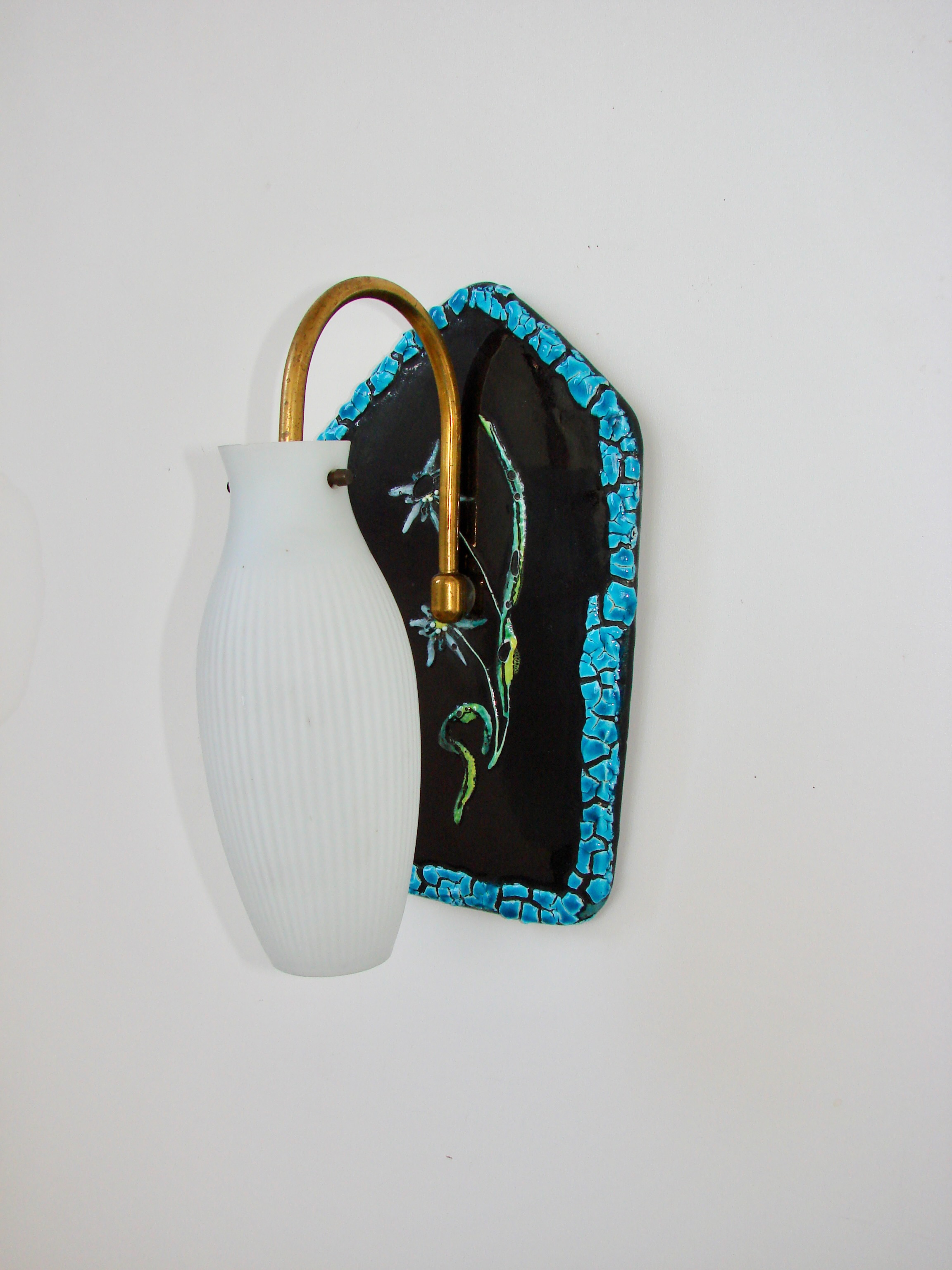 Ceramiczny kinkiet ścienny z lat 60., o prostej, modernistycznej formie charakterystycznej dla designu powojennego.