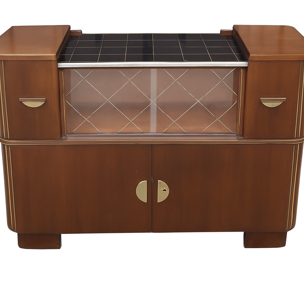 Komoda w stylu Mid-Century Modern z lat 50. to przykład eleganckiego, ponadczasowego wzornictwa, które łączy prostotę formy z funkcjonalnością. Mebel został wykonany z drewna fornirowanego, co nadaje mu naturalny wygląd i charakterystyczny rysunek słojów typowy dla mebli z połowy XX wieku.