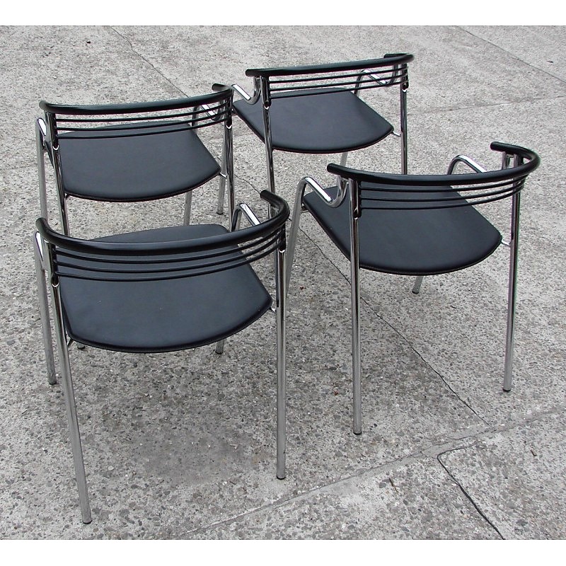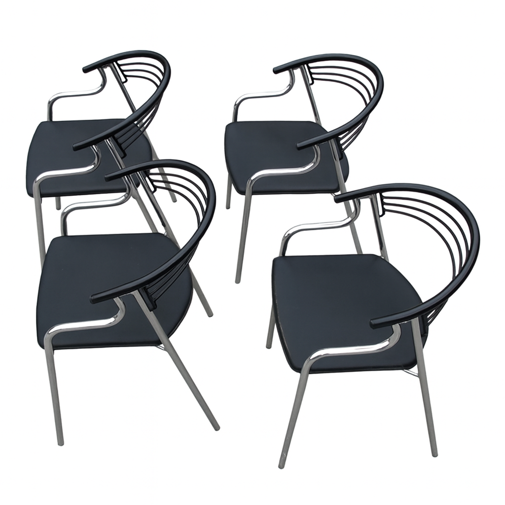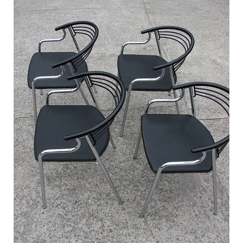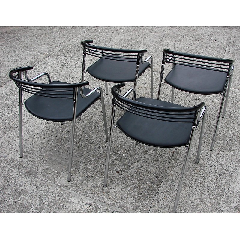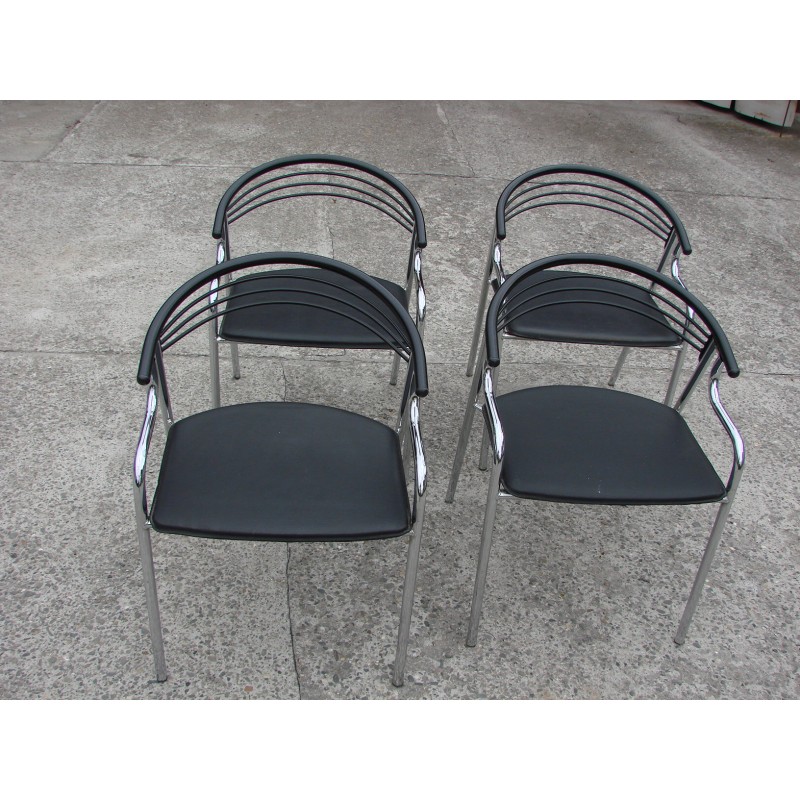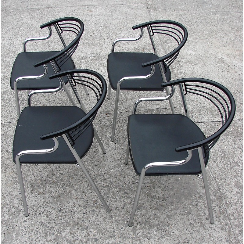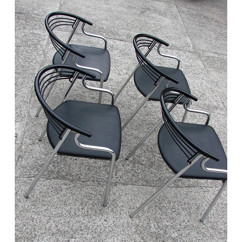 Krzesła zachowane są w dobrym stanie, z naturalnymi śladami użytkowania typowymi dla mebli vintage. Dzięki minimalistycznej formie i włoskiej estetyce idealnie sprawdzą się w loftowych, nowoczesnych lub klasycznych wnętrzach – zarówno w jadalni, jak i w przestrzeniach komercyjnych, takich jak showroomy czy biura.