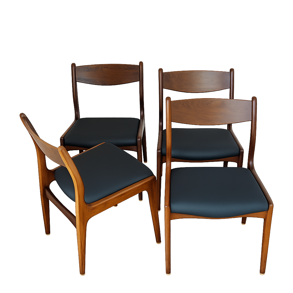 Oferujemy komplet 4 wyjątkowych krzeseł do jadalni z lat 60. XX wieku, wyprodukowanych przez renomowaną markę Richbilt MFG. Meble utrzymane są w charakterystycznym stylu inspirowanym projektami Johannesa Andersena – lekkie, eleganckie formy oraz ponadczasowy design.