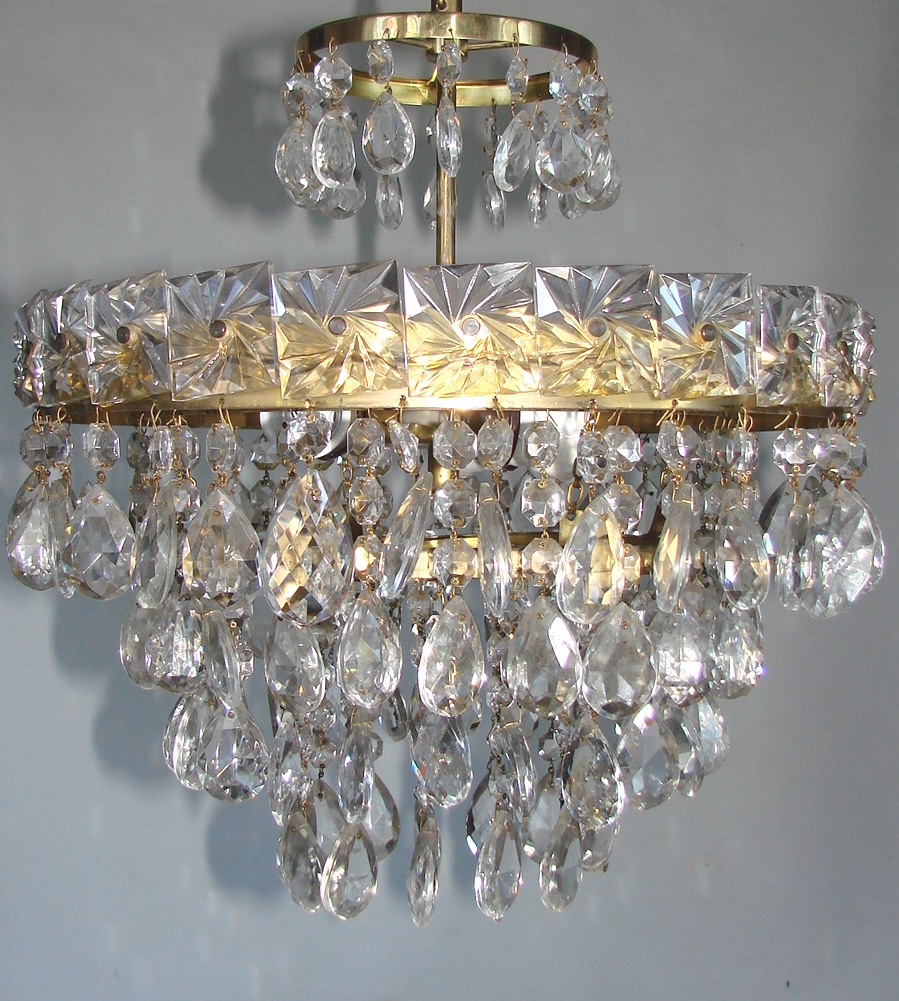 Kryształowy żyrandol kaskada z lat 60 to efektowny i elegancki model, wykonany z wysokiej jakości mosiądzu oraz pięknie szlifowanego szkła. Kaskadowo ułożone kryształowe pasma tworzą spektakularną formę, która efektownie rozprasza światło, nadając wnętrzu luksusowy charakter.