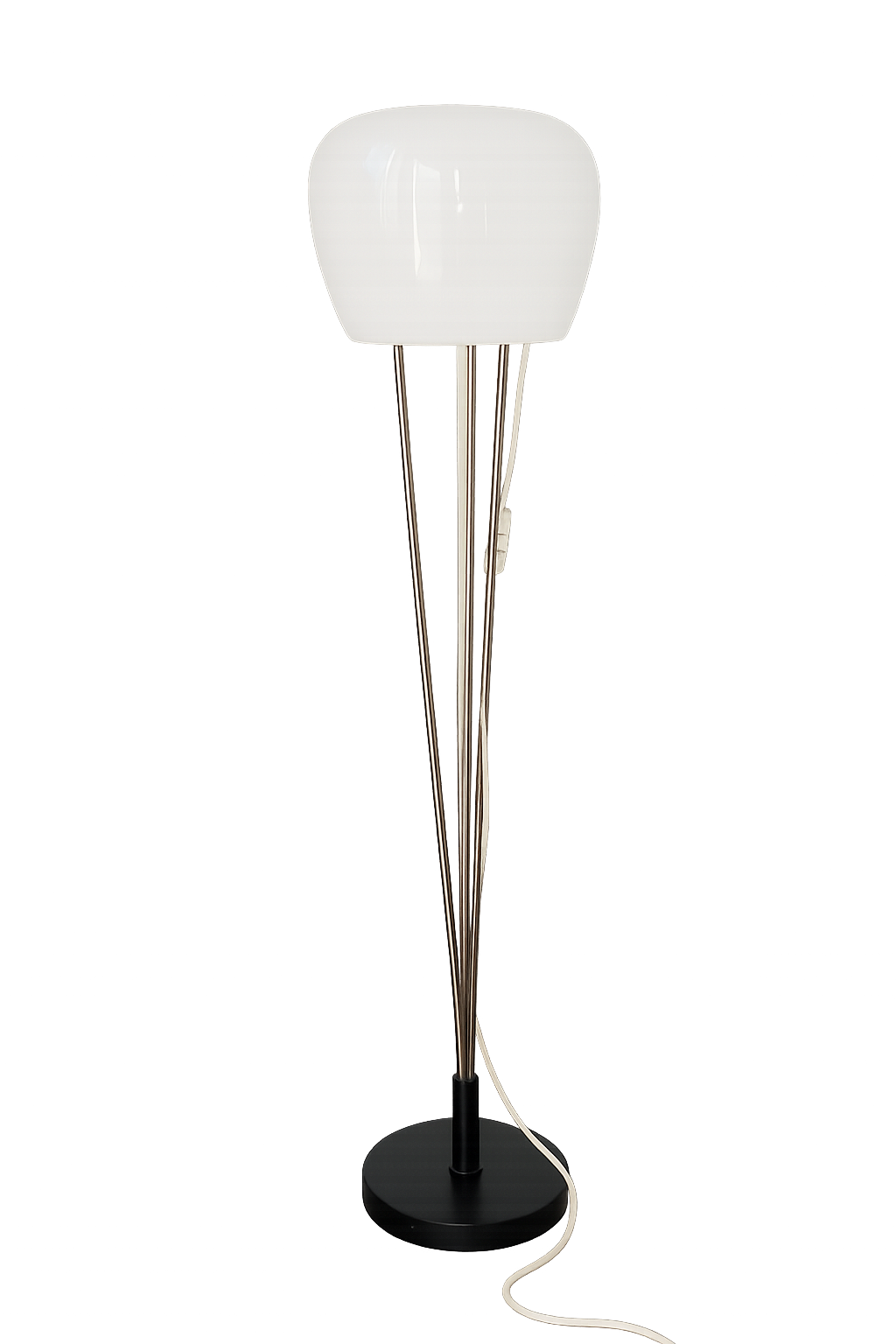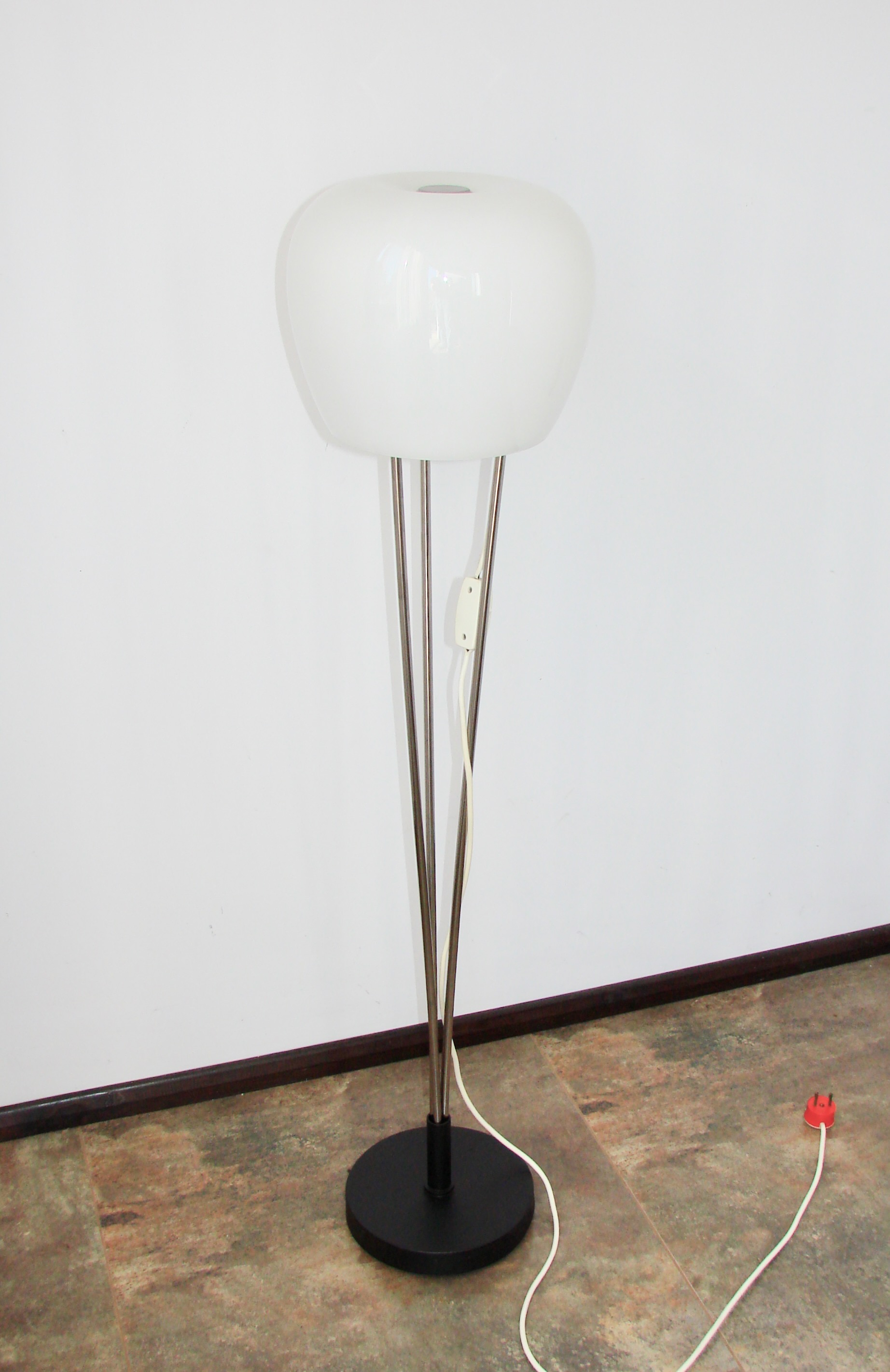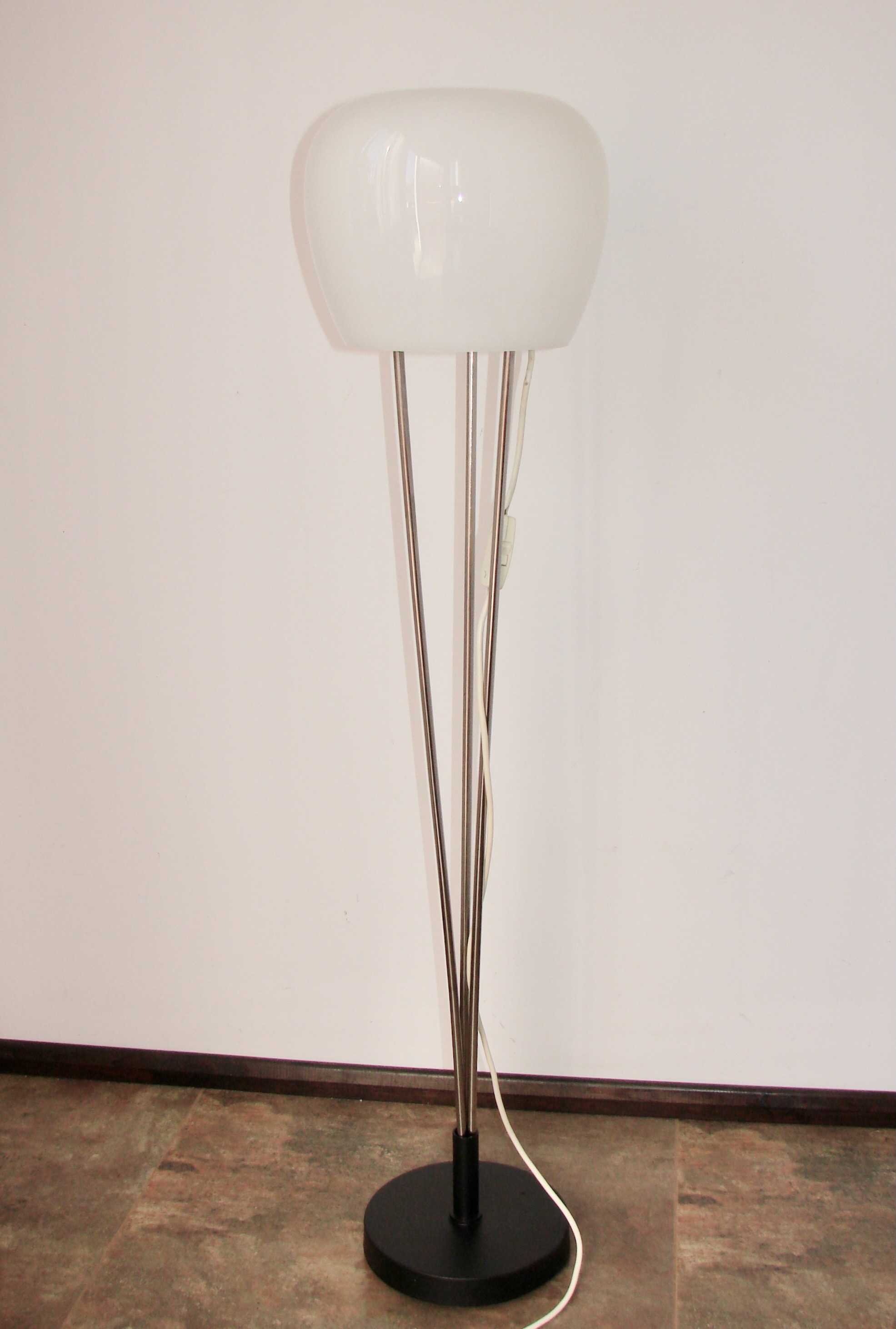 Oryginalna lampa podłogowa zaprojektowana przez A. Gałęckiego, pochodząca z Polski z lat 70. XX wieku. To doskonały przykład modernistycznego wzornictwa tamtej epoki, łączącego prostotę formy z funkcjonalnością.
