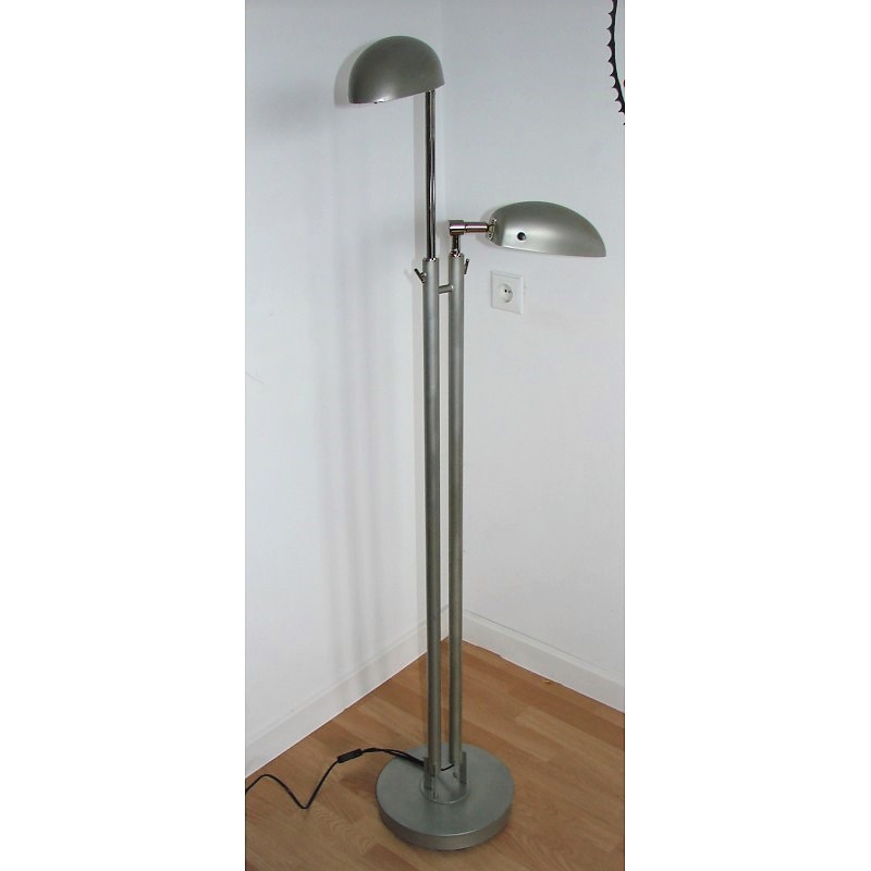 Lampa podłogowa w stylu Modern z lat 80. to funkcjonalne i efektowne oświetlenie, które świetnie wpisuje się zarówno w aranżacje retro, jak i nowoczesne. Konstrukcja wykonana jest w całości z metalu, dzięki czemu lampa jest stabilna, trwała i prezentuje się elegancko.
