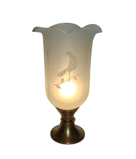 Oryginalna lampa stołowa z lat 40. to ponadczasowy przykład eleganckiego, przedwojennego wzornictwa. Solidna mosiężna podstawa w połączeniu z dużym kloszem z matowego szkła tworzy harmonijną, klasyczną całość, która pięknie rozprasza światło.