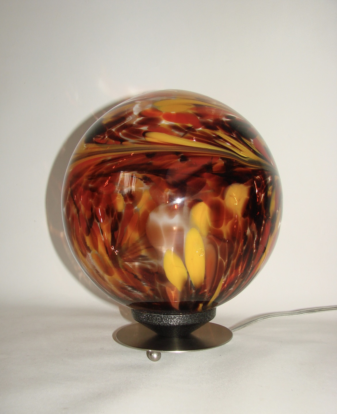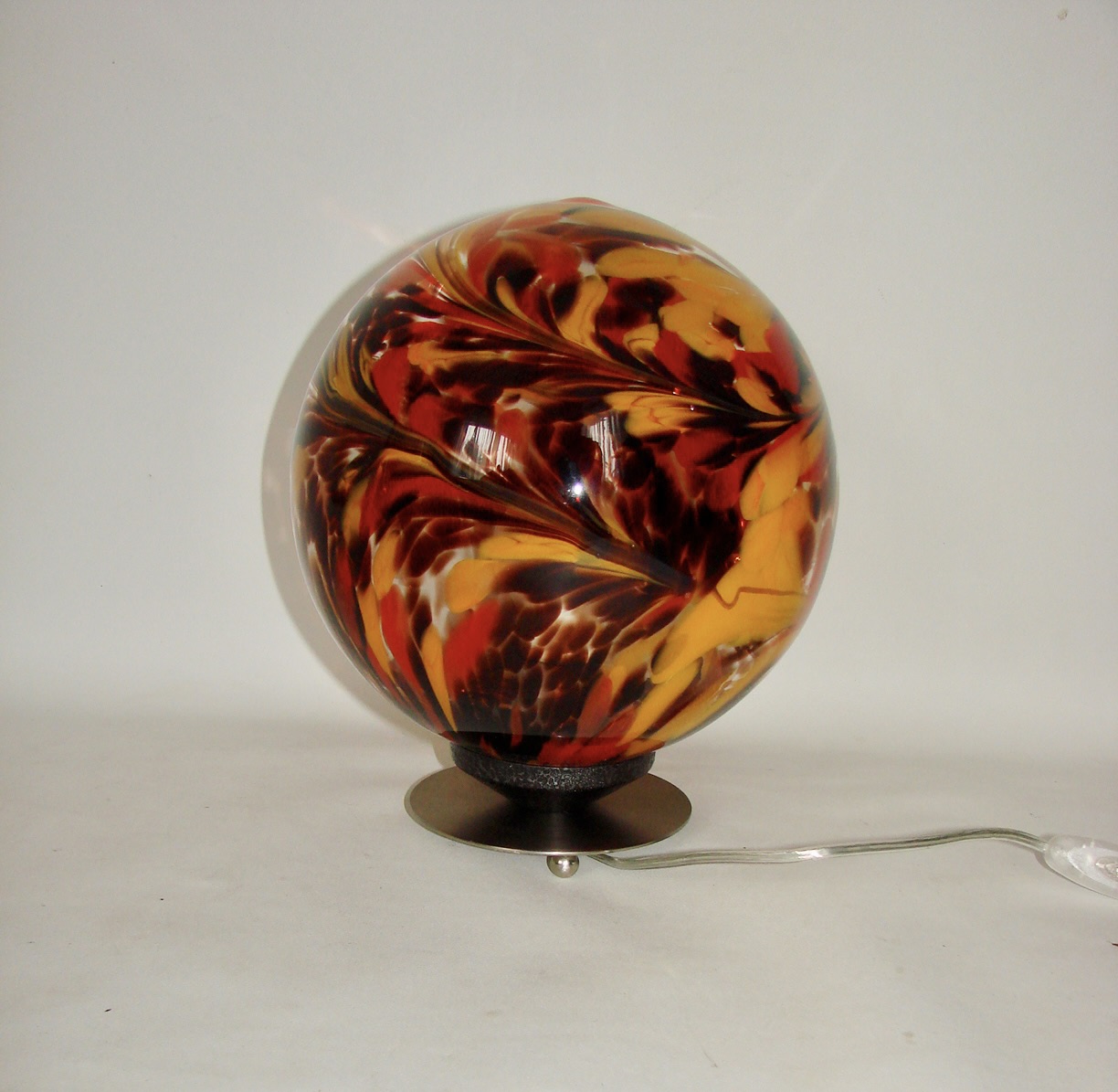 Solidna konstrukcja z metalu i szkła sprawia, że lampka łączy w sobie trwałość oraz elegancję charakterystyczną dla designu tamtych lat. Jej kształt i kolorystyka wpisują się zarówno w aranżacje retro, jak i nowoczesne.