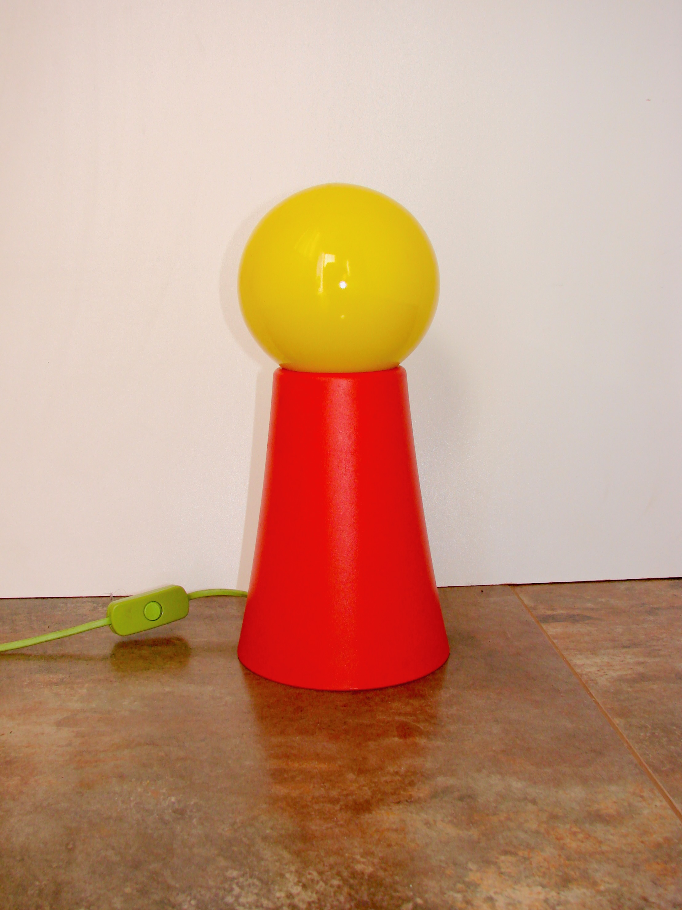 Oryginalna lampka w stylu space age z lat 70., wyróżniająca się wyjątkową formą przypominającą pionek szachowy. To charakterystyczne, rzeźbiarskie podejście do designu doskonale oddaje estetykę retro-futurystycznej epoki.