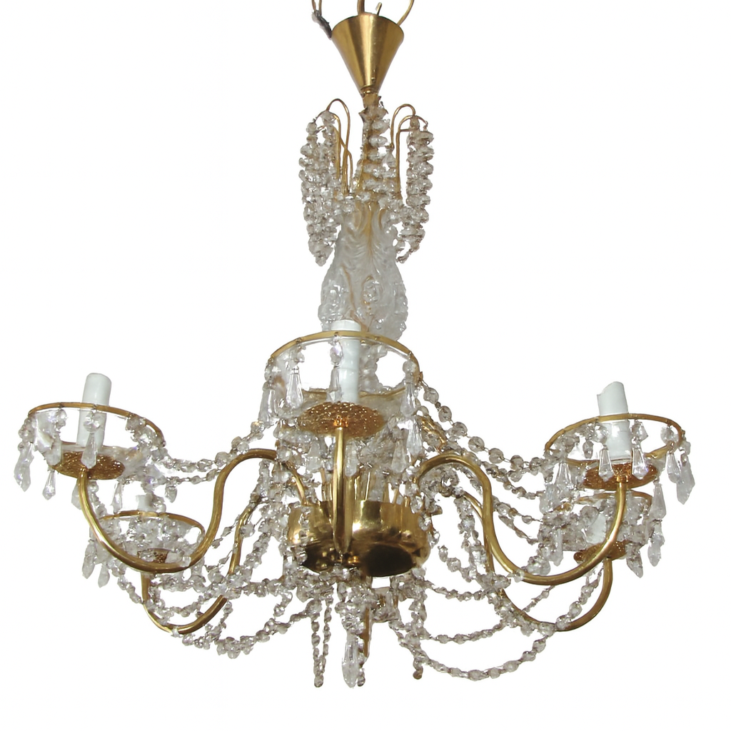 Mosiężny żyrandol z lat 60 to elegancki i klasyczny element oświetlenia, utrzymany w ponadczasowym stylu charakterystycznym dla połowy XX wieku. Konstrukcja wykonana w całości z mosiądzu nadaje lampie szlachetny kolor, trwałość oraz dekoracyjny charakter.
