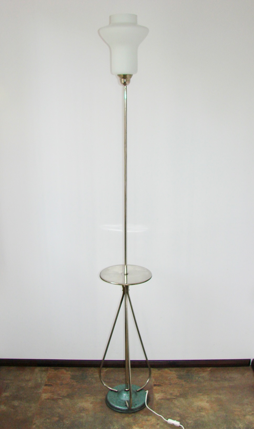 Polska lampa podłogowa z lat 60., utrzymana w modernistycznej estetyce tamtego okresu.