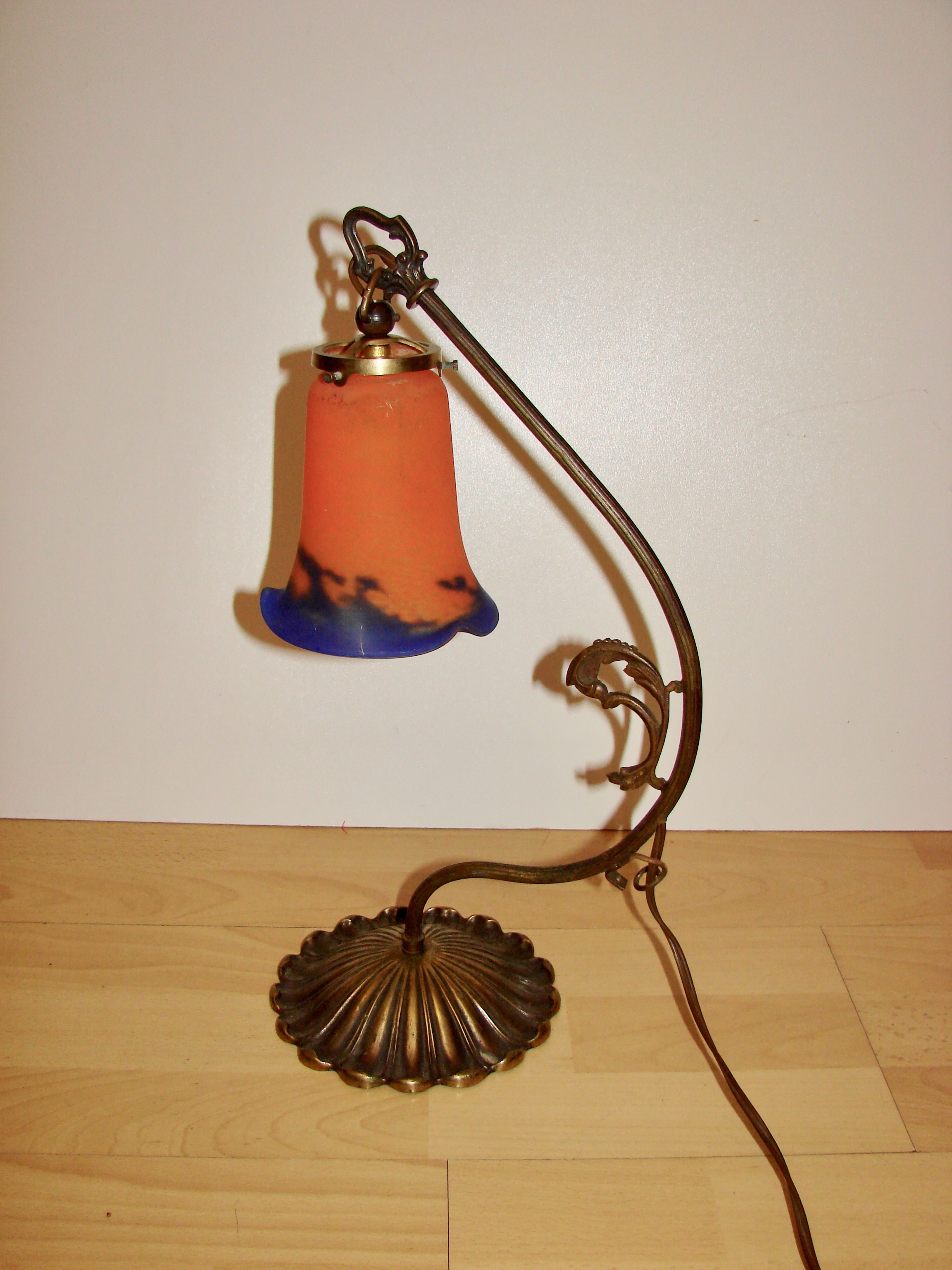 Wyjątkowa lampa w stylu secesyjnym pochodząca z lat 40., wyróżniająca się smukłą sylwetką i dekoracyjnym charakterem inspirowanym naturą oraz klasycznym rzemiosłem.