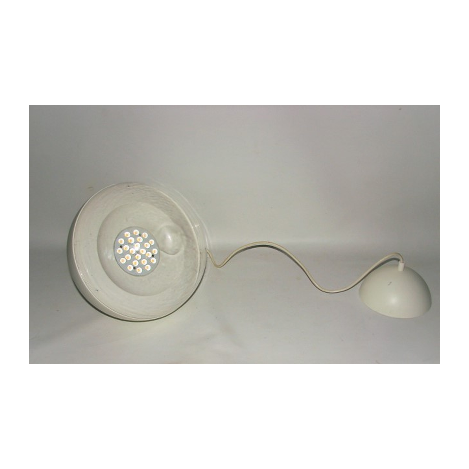 Stylowa skandynawska lampa wisząca z lat 70., będąca doskonałym przykładem nordyckiego wzornictwa tamtego okresu. Prosta, elegancka forma oraz harmonijne połączenie metalu, aluminium i tworzywa sprawiają, że lampa prezentuje się lekko, nowocześnie i ponadczasowo.