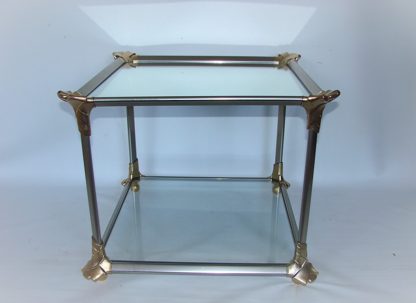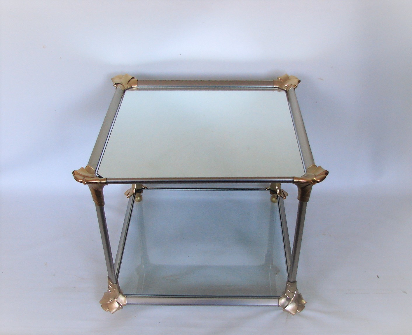 Oryginalny stolik kawowy z lat 70., wykonany z aluminium oraz szkła.