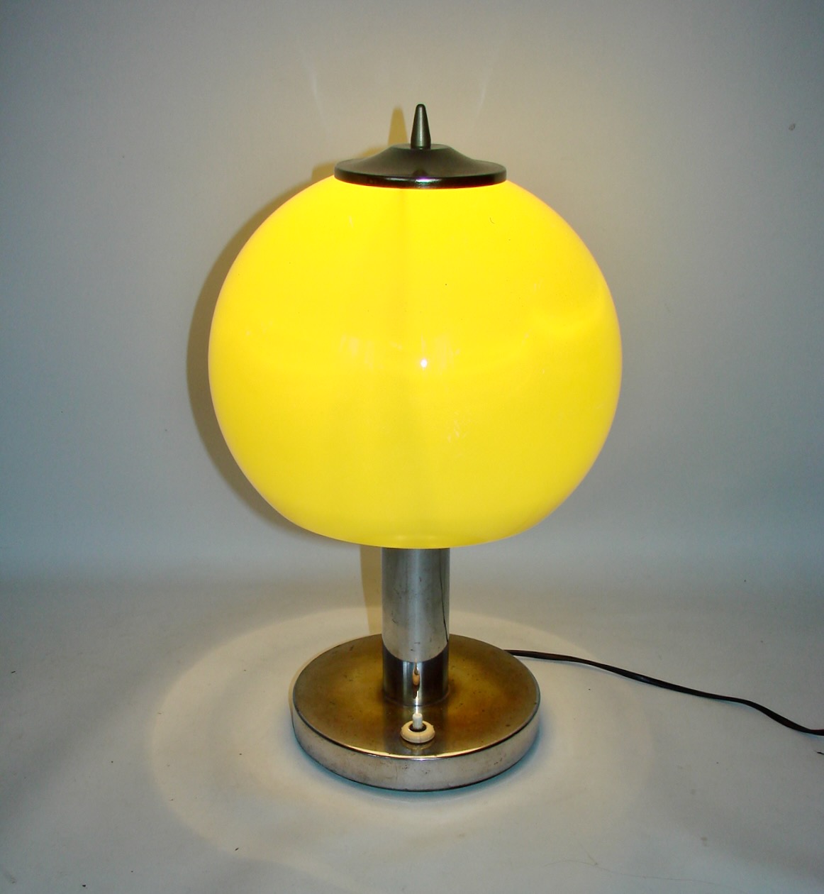 Lampa stołowa Napako z lat 50. to wyjątkowy przykład powojennego wzornictwa modernistycznego. Wykonana została ze stali chromowanej oraz szkła, co nadaje jej elegancki i ponadczasowy charakter. Zachowana w bardzo dobrym stanie, prezentuje się niezwykle stylowo zarówno jako funkcjonalne źródło światła, jak i dekoracyjny element wnętrza.