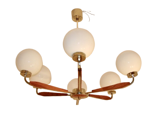 Oryginalny żyrandol Modern z lat 70. to wyjątkowy przykład połączenia elegancji i funkcjonalnego wzornictwa epoki mid-century.