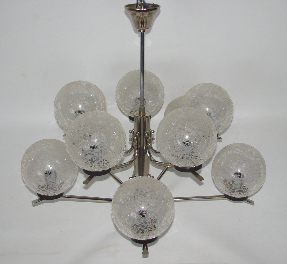 Lampa zachowana jest w dobrym stanie wizualnym i technicznym, z naturalnymi śladami użytkowania adekwatnymi do wieku. Przystosowana do 10 żarówek z gwintem E14, co pozwala uzyskać intensywne i równomierne oświetlenie pomieszczenia.