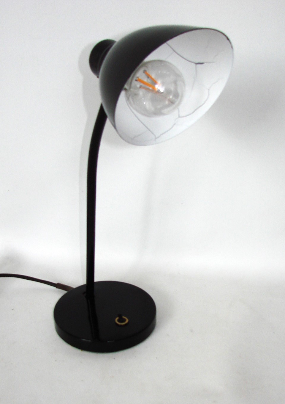 Kolekcjonerska lampa biurkowa projektu A. Marciniaka z lat 30. Zachowana w bardzo dobrym stanie, z oryginalnym charakterem. Wymaga jednej żarówki E27 (brak w zestawie). Unikatowy element wnętrz w stylu retro lub industrialnym.
