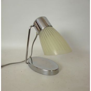 Oryginalna lampka biurkowa wyprodukowana w Czechosłowacji w latach 60. przez firmę Drupol. Wykonana z chromowanego metalu i szkła. Klasyczny, minimalistyczny design charakterystyczny dla stylu mid-century modern. Idealna jako oświetlenie pomocnicze na biurko, stolik nocny lub do wnętrz w stylu vintage.