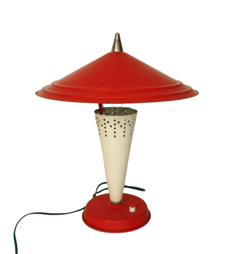 Polska lampa „grzybek” z lat 60., wykonana z metalu, zachowana w oryginalnym stanie. Kultowy design tamtego okresu, idealna do wnętrz w stylu vintage lub mid-century. Wymaga żarówki z gwintem E27.